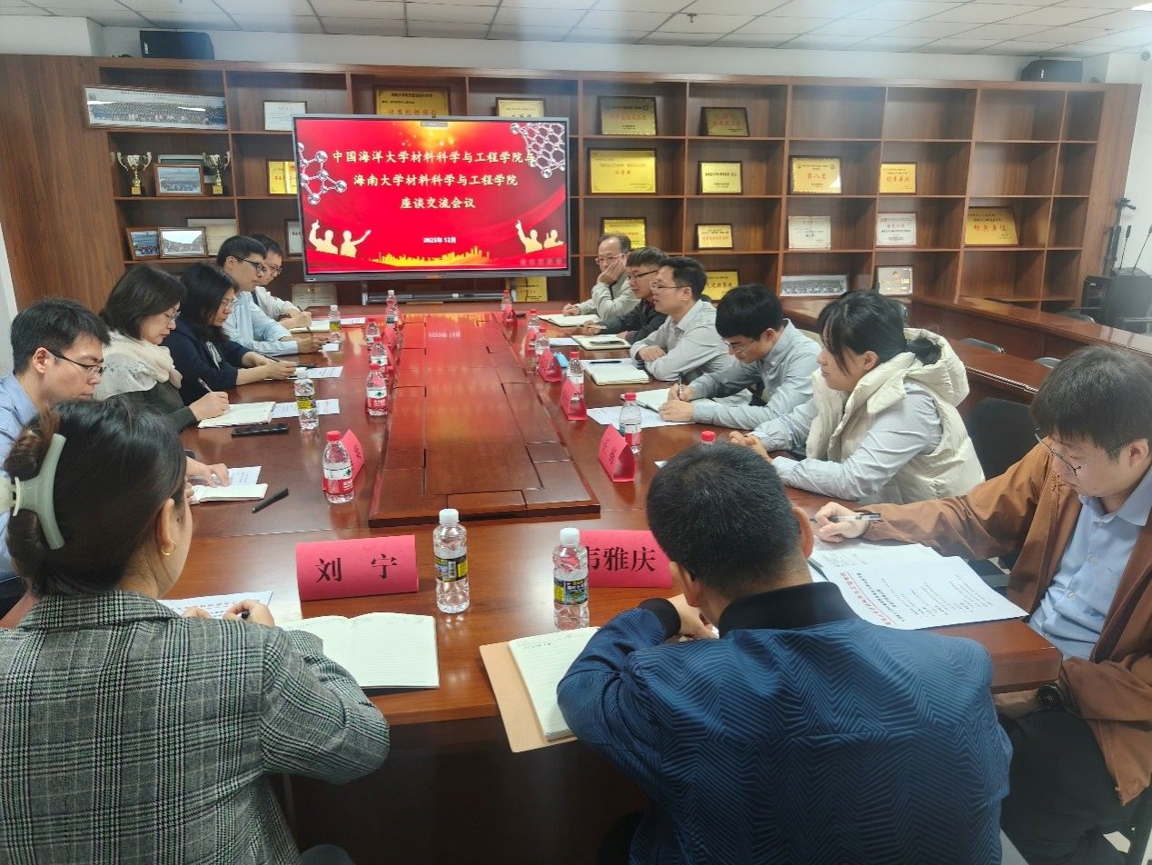 邓意达院长介绍了学院和中国海洋大学澳门银河赌场 的基本情况。林仕伟副院长介绍了海南大学材料科学与工程学科的基本情况、科研成果和年度工作开展情况。中国海洋大学澳门银河赌场 院长崔洪芝介绍了中国海洋大学澳门银河赌场 的基本情况、科学研究、服务社会和国际合作等情况。