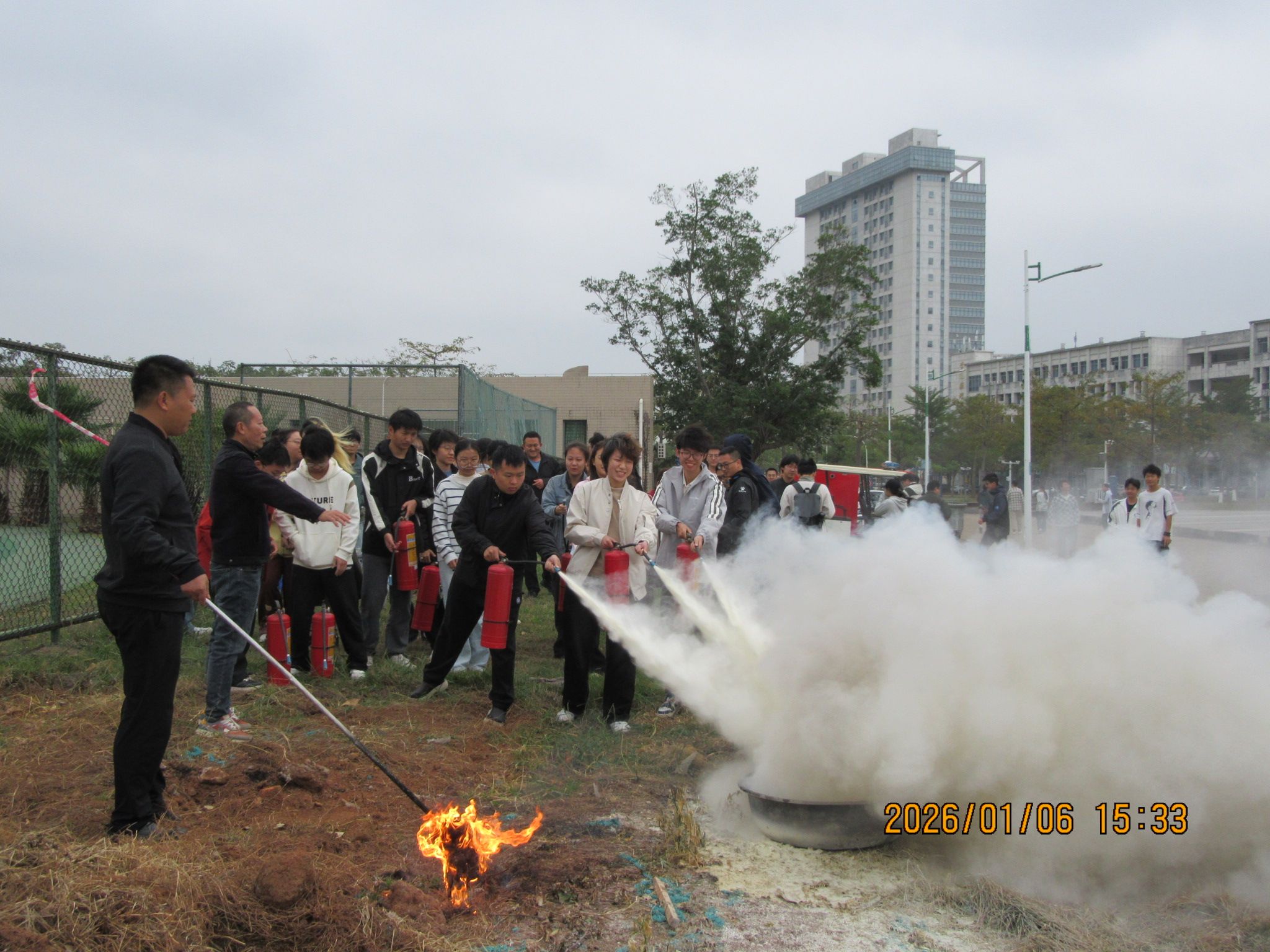 为深入贯彻落实海南大学消防安全管理规定及学校关于开展消防安全培训的通知精神,进一步加强和规范学院消防安全管理,夯实师生消防知识根基,锻造消防安全核心能力,切实预防火灾事故、减少火灾危害,保障全院师生员工生命财产与学校财产安全,2026年1月6日下午,澳门银河赌场 于第二田径场与体育学院之间的道路区域,组织开展消防安全专题培训及实战演练活动。学院党委书记胡先文、分管副院长李长久全程观摩学习,李长久副院长作了动员讲话,学院教职工代表、实验室管理员及学生代表参加了此次活动。
