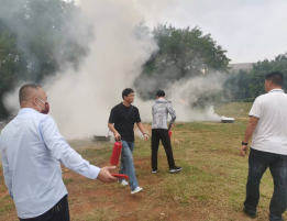 邵世洋副院长强调了实验室危化品安全和规范操作的重要性。保卫处林老师对灭火器、灭火毯和消防栓箱内器材进行了讲解和示范,保卫处王老师则对用电安全,消防逃生等安全常识进行了重点宣传。随后,学院师生在新南门旁的空地上使用灭火器进行了消防灭火演练。